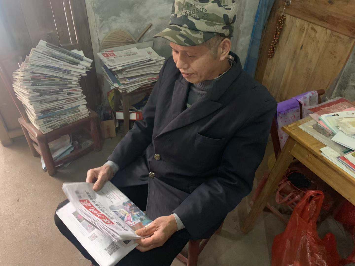 ▲黄孟敏平时最大的爱好就是读晚报 记者 贺天鸿 摄