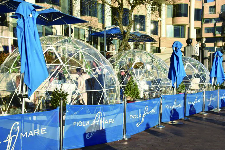 当地时间12月29日,美国首都华盛顿民众在室外“泡泡”餐厅用餐。近日,因新冠肺炎病例数激增,华盛顿宣布关闭所有室内餐厅,仅室外餐厅可继续营业。