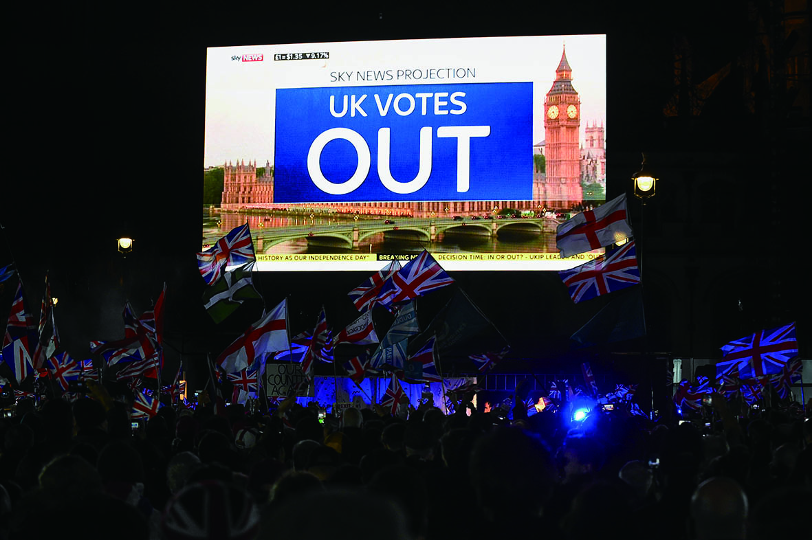 ▲1月31日晚,在英国伦敦,支持“脱欧”的人们在议会广场集会,庆祝“脱欧”