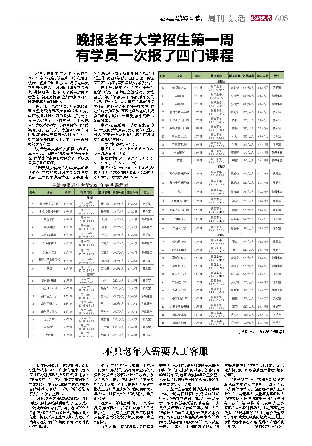 晚报老年大学招生第一周 有学员一次报了四门课程
