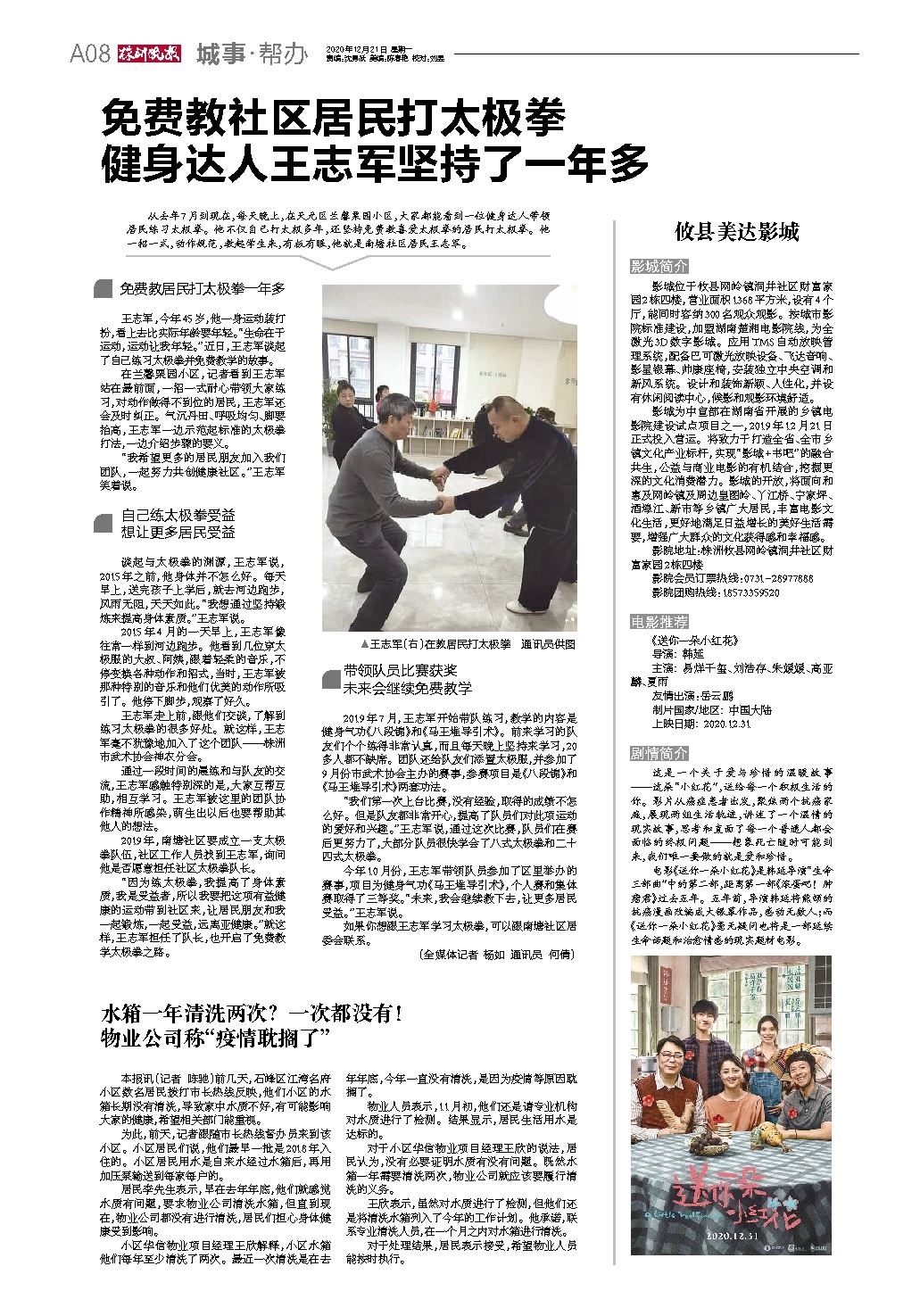 免费教社区居民打太极拳健身达人王志军坚持了一年多