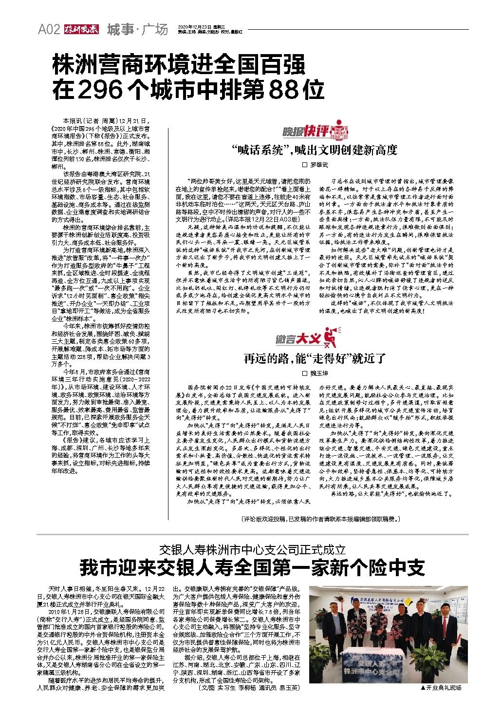 2020年12月23日《株洲晚报》