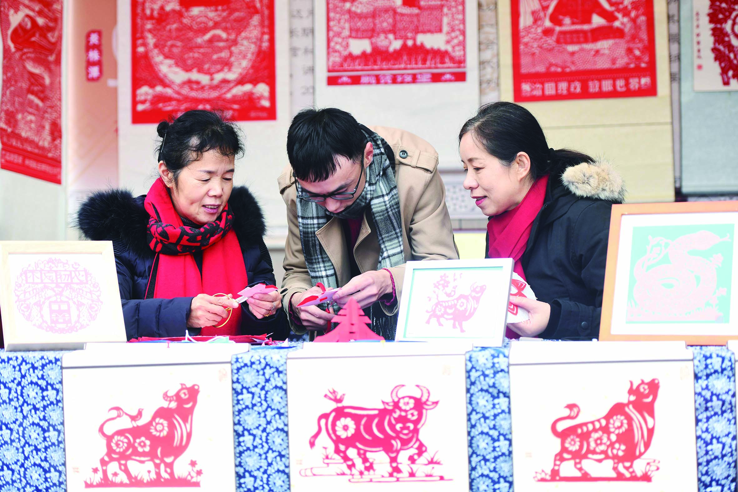 “父亲今年都81岁了,但是一听说有剪纸活动,就立马热血沸腾,拦都拦不住。”李映明的女儿李伟静被父亲几十年如一日坚持剪纸的精神打动,跟随父亲的脚步,成了一名非遗剪纸传承人。李映明的作品主题鲜明,刻画了农村、工矿生产等生动场面,具有浓厚的时代感和人情味。他曾赴加拿大、西班牙、俄罗斯等多国传播非遗剪纸文化,真正做到非遗“走出去”。