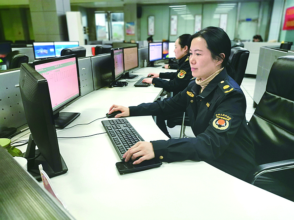 ▲市城管局监督指挥中心坐席员正在处理市民发来的问题求助 记者 伍靖雯 摄