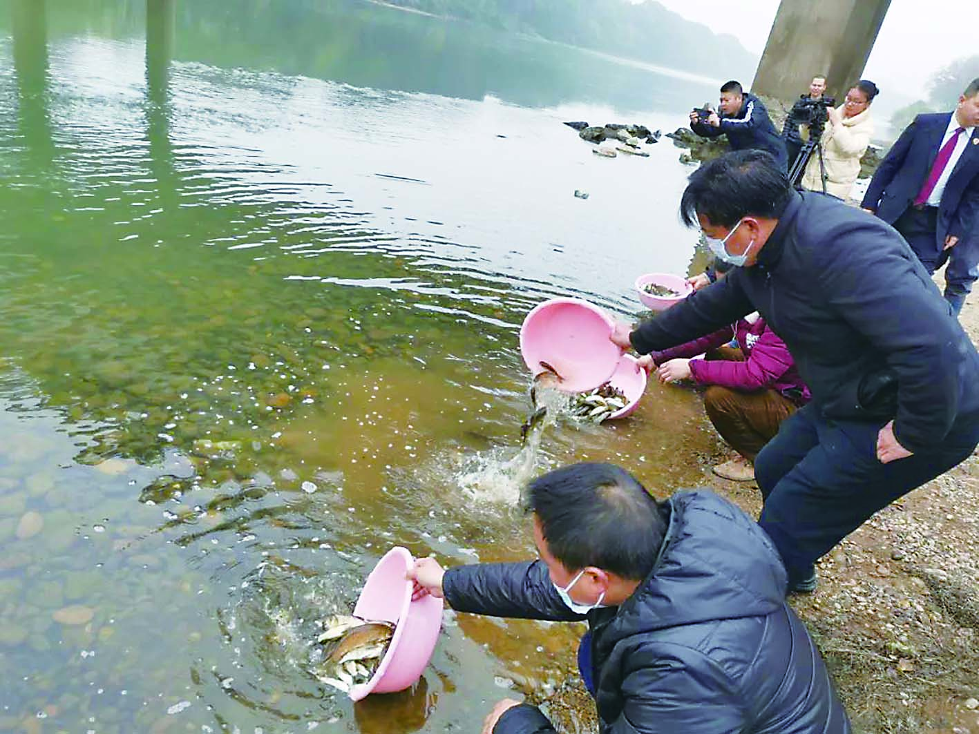 12月11日,茶陵县法院执行局干警联合检察院、公安局、畜牧水产事务中心等单位工作人员,对该院审理的3起非法捕捞水产品案的鱼苗放流依法进行现场监督,督促杨某、王某、廖某等3起案件被告人通过人工增殖放流,以修复洣水茶陵段水域渔业生态。
