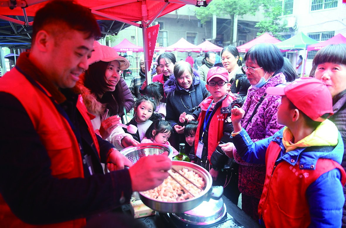 ▲安利株洲分公司工作人员现场制作爆米花供居民品尝