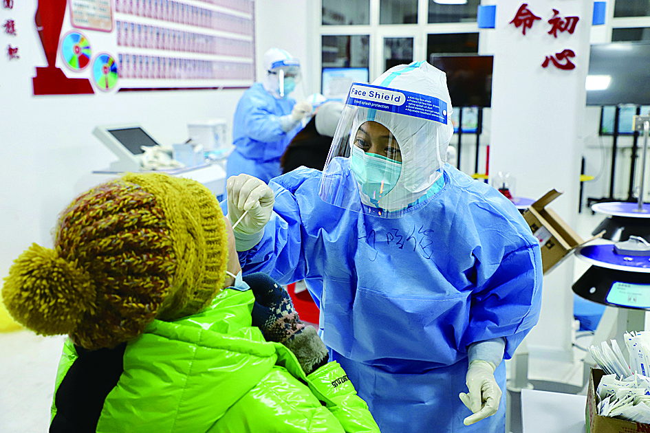 ▲12月10日,绥芬河市民深夜进行核酸检测