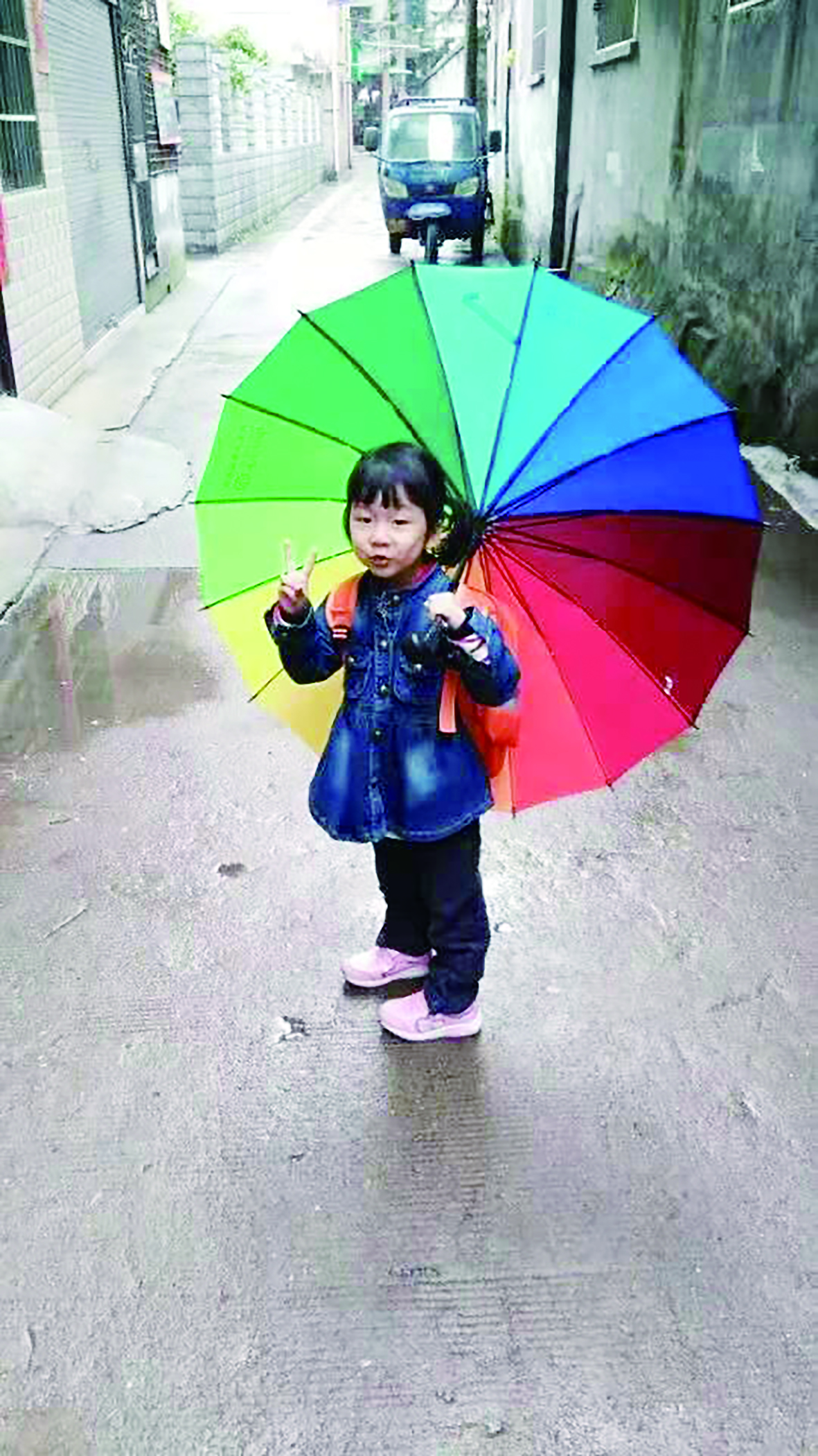 可昕是个很乖巧可爱的孩子,这是她4岁时在上学路上的小巷子里拍的。天气越来越寒冷了,她坚持上幼儿园,争做幼儿园的“全勤宝宝”。