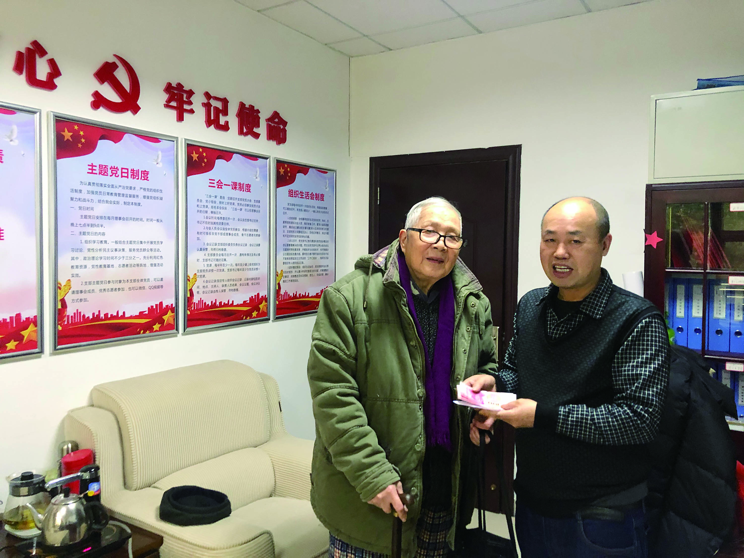▲老人捐款后与记者合影留念 袁伟 摄
