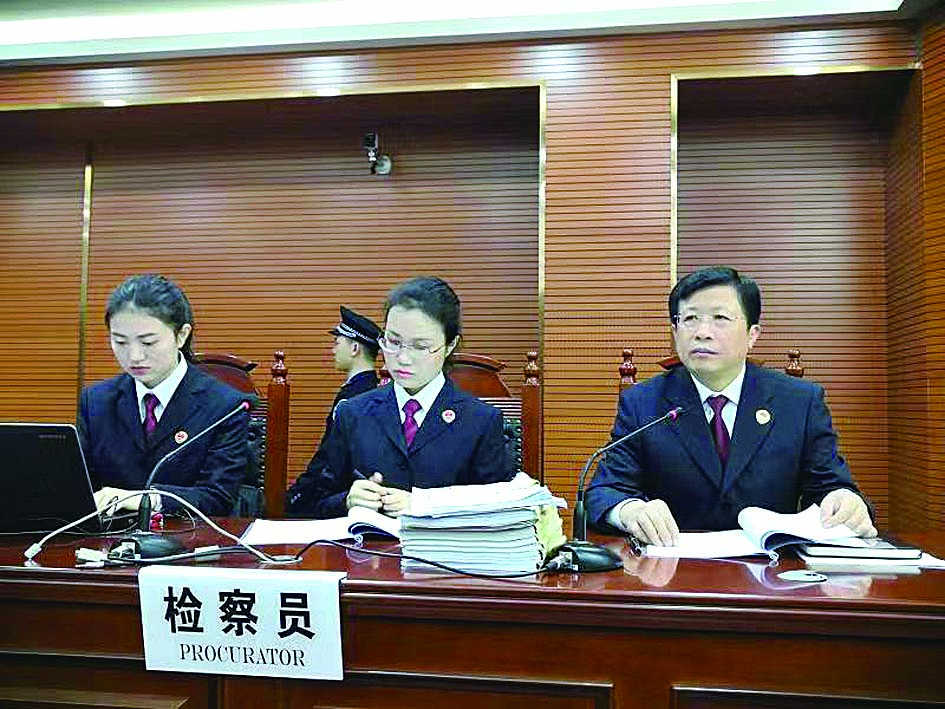 ▼黑恶案件审理过程中,市检察院检察长胡波(右一)出庭支持公诉 通讯员供图