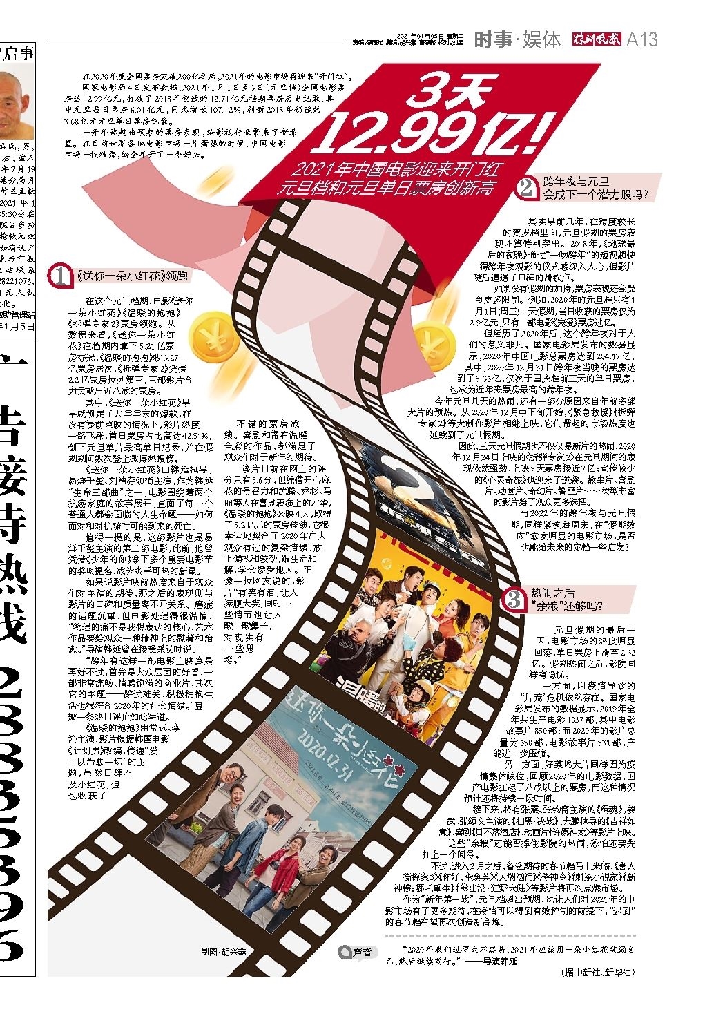 2021年中国电影迎来开门红 元旦档和元旦单日票房创新高