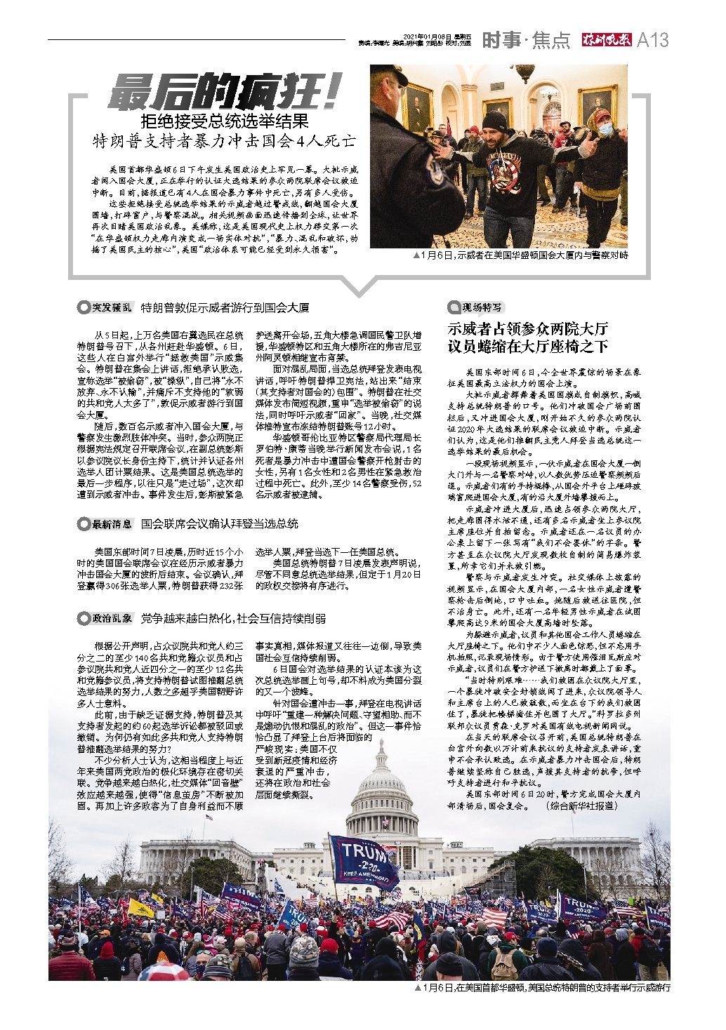 拒绝接受总统选举结果 特朗普支持者暴力冲击国会4人死亡