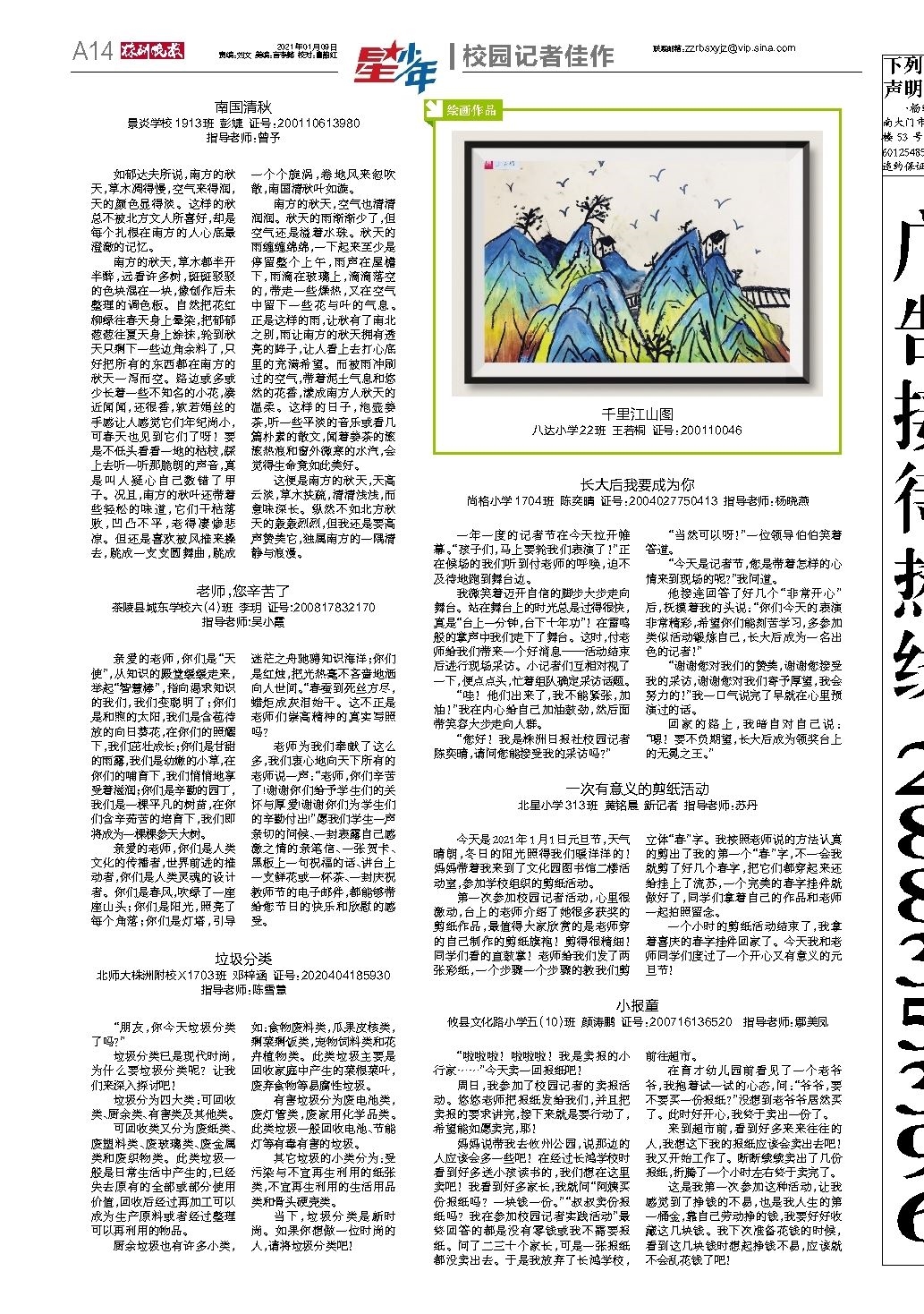 第A13版:校园记者佳作
