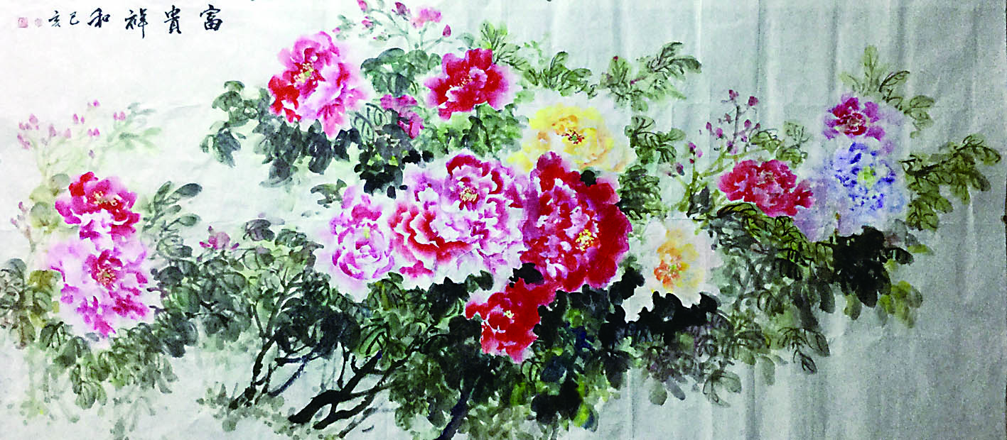 ▲国画《牡丹图》 (作者:肖胜乔)