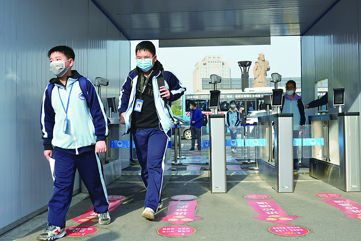 ▲2020年4月13日,建宁中学,同学们戴着口罩走进校园