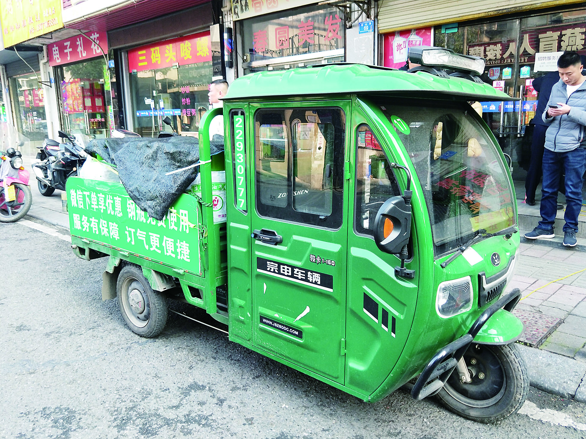 ▲三轮车满载瓶装液化气沿街叫卖 记者 何春林 摄