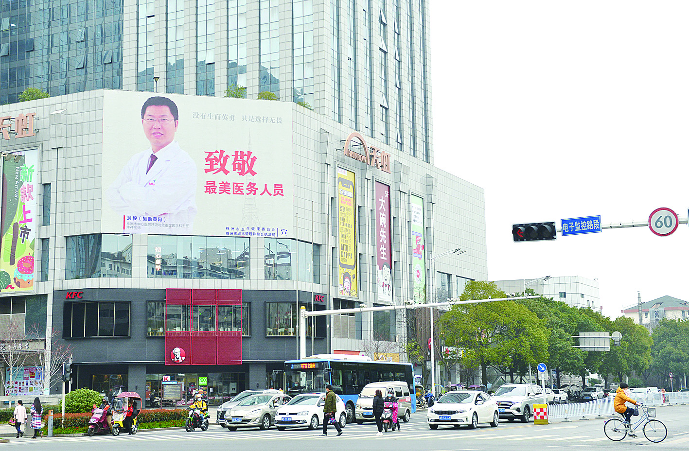 ▲3月份,最美医务人员肖像照登上城区最靓广告牌