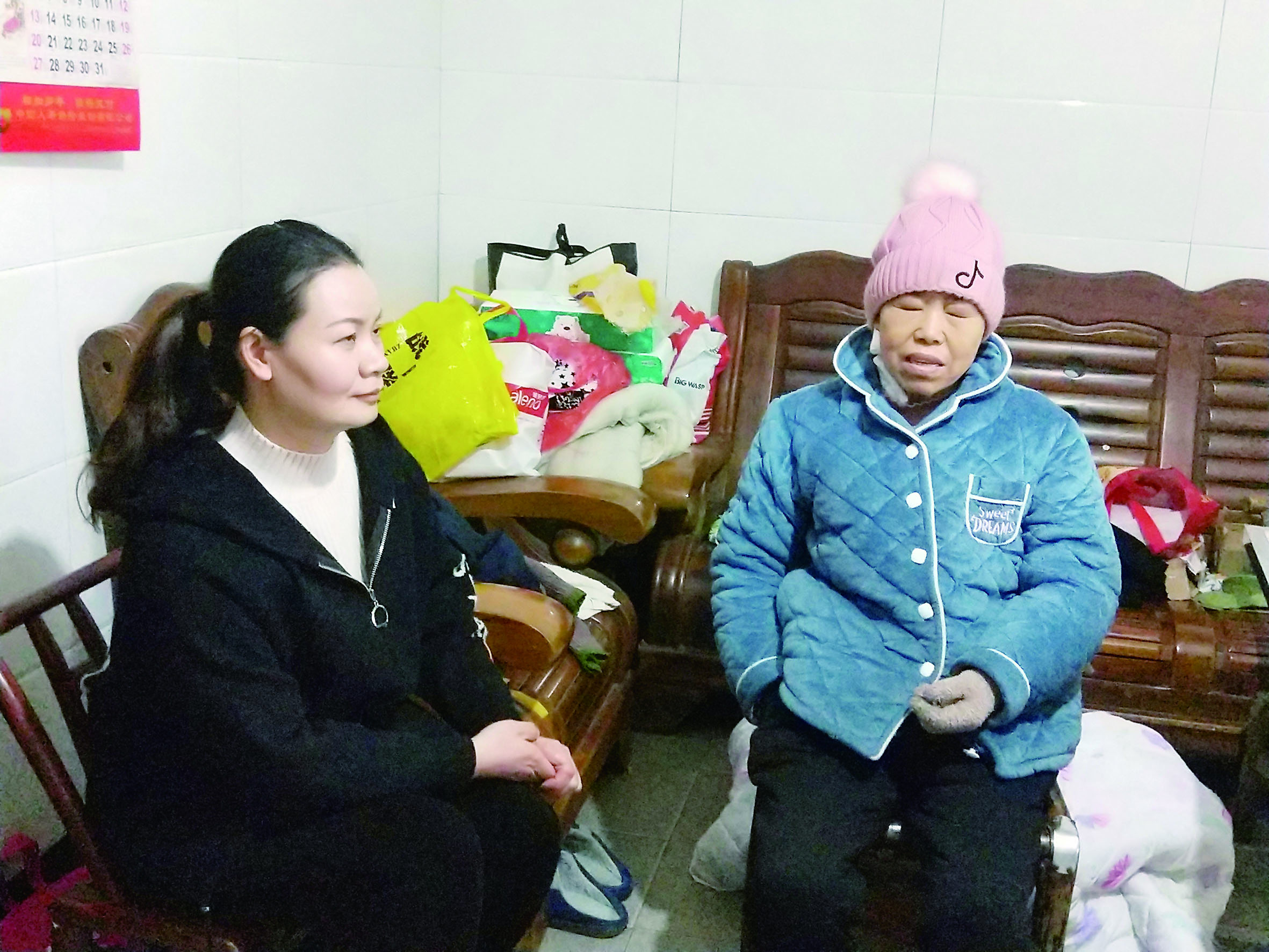 ▲社区工作人员经常会到刘爱华(右)家,陪她聊天 记者 何春林 摄