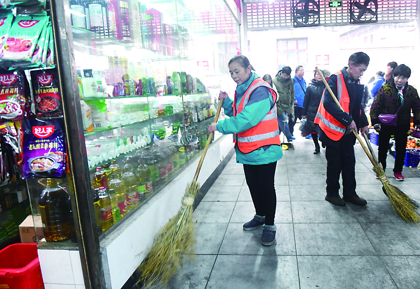 ▶姚明泉和余翠娥夫妇在金锦祥云农贸市场做保洁员有20余年了