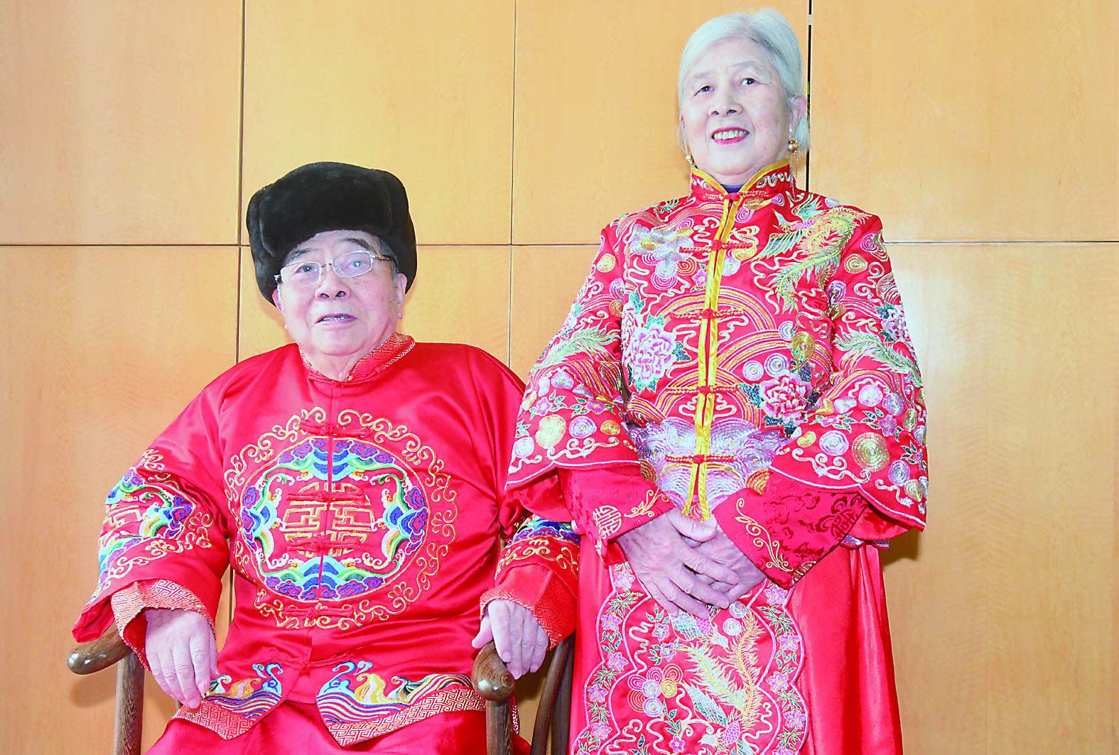 ▲换上盛装,81岁的王锡文老人和老伴李信莲显得精气神十足