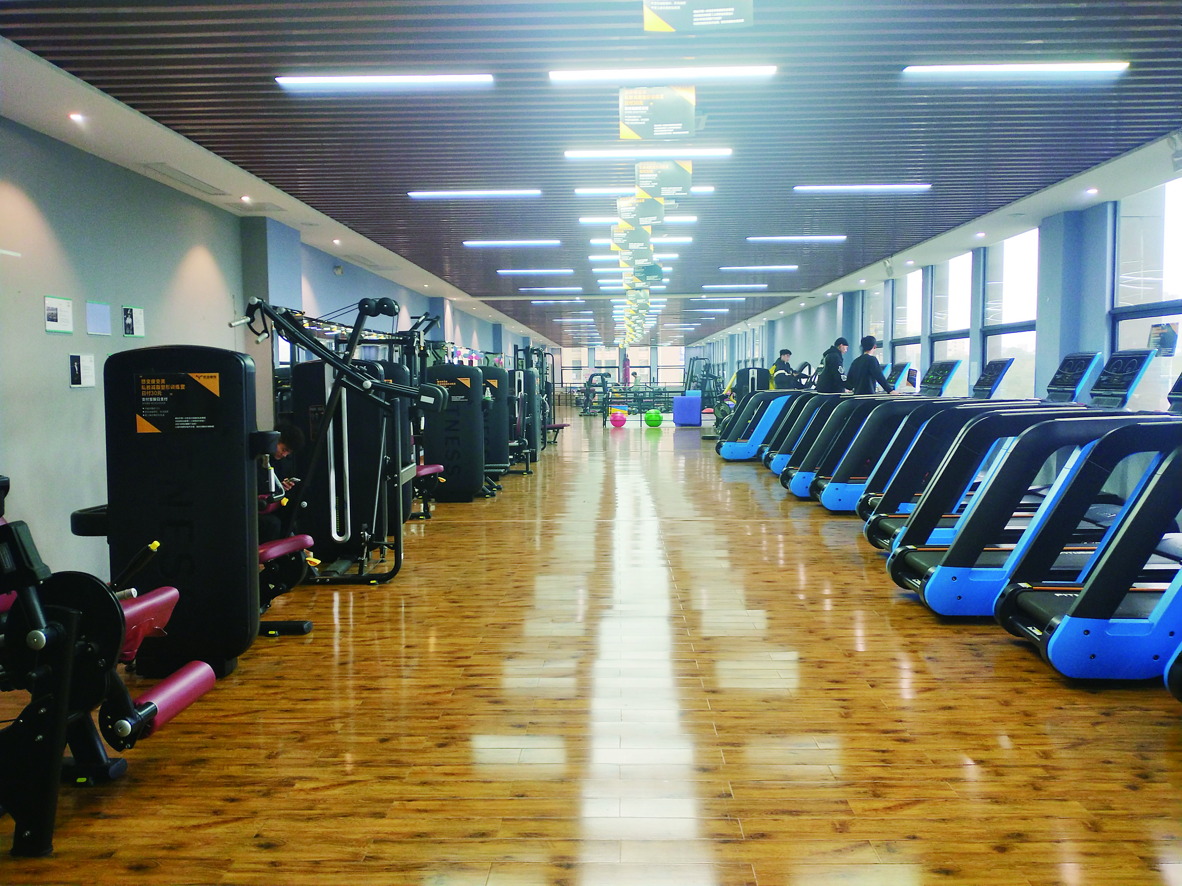 7日下午,记者来到位于湖南工业大学附近的云动健身馆,记者发现,该场馆里冷冷清清,只有零星几位顾客在健身。瑜伽室、舞蹈室、动感单车训练室等场馆处于停用状态,整个健身房内没有看到教练的踪迹,只有两名工作人员在场馆大门口处值守。