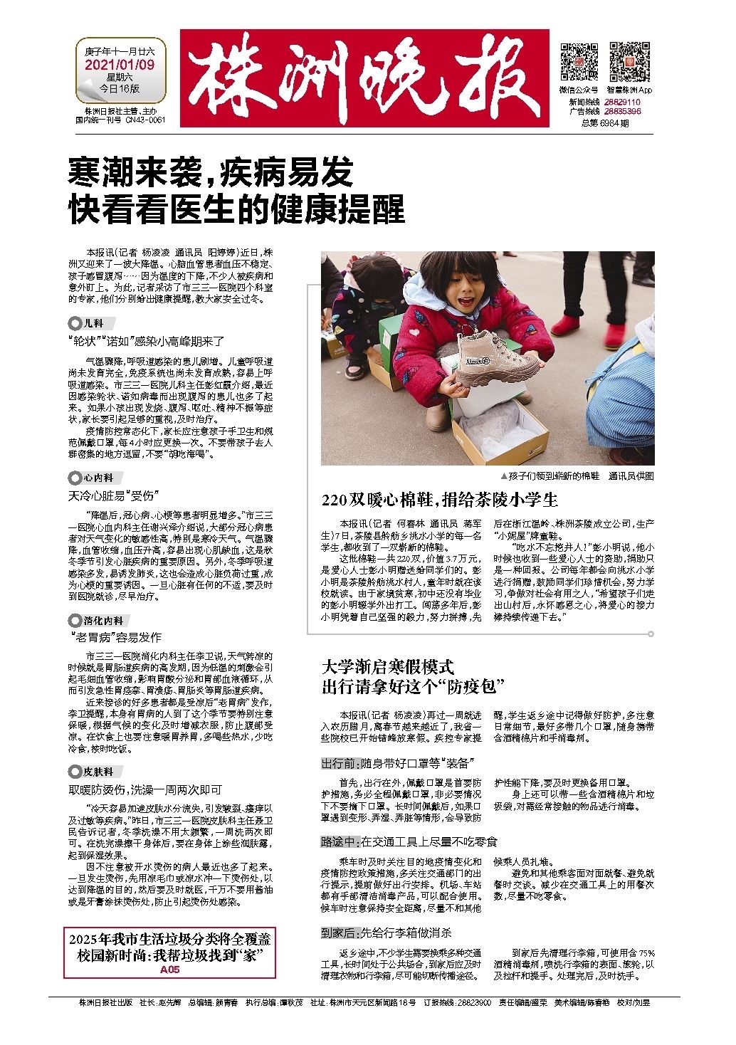 本报讯(记者 何春林 通讯员 蒋军生)7日,茶陵县舲舫乡洮水小学的每一名学生,都收到了一双崭新的棉鞋。
