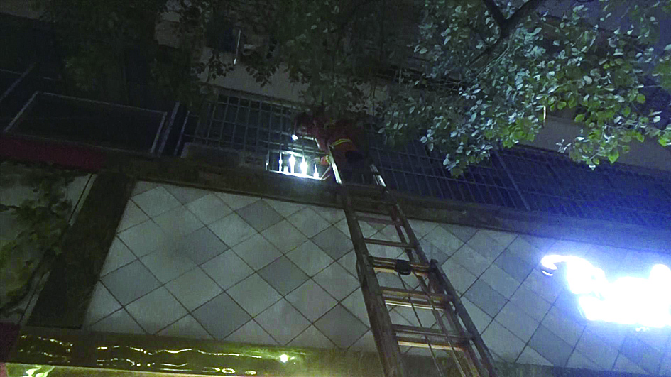 前日下午,家住渌口区渌口镇的李先生出门办事,他下楼时才发现没带2岁的女儿。李先生用钥匙开门,没想到女儿不慎将房门反锁,他无法开门,由于担心孩子出意外,他只能拨打119报警。随后,到场的消防员通过云梯爬到二楼防盗窗,用工具将防盗窗进行破拆,最终进入室内打开房门,孩子得以脱困。