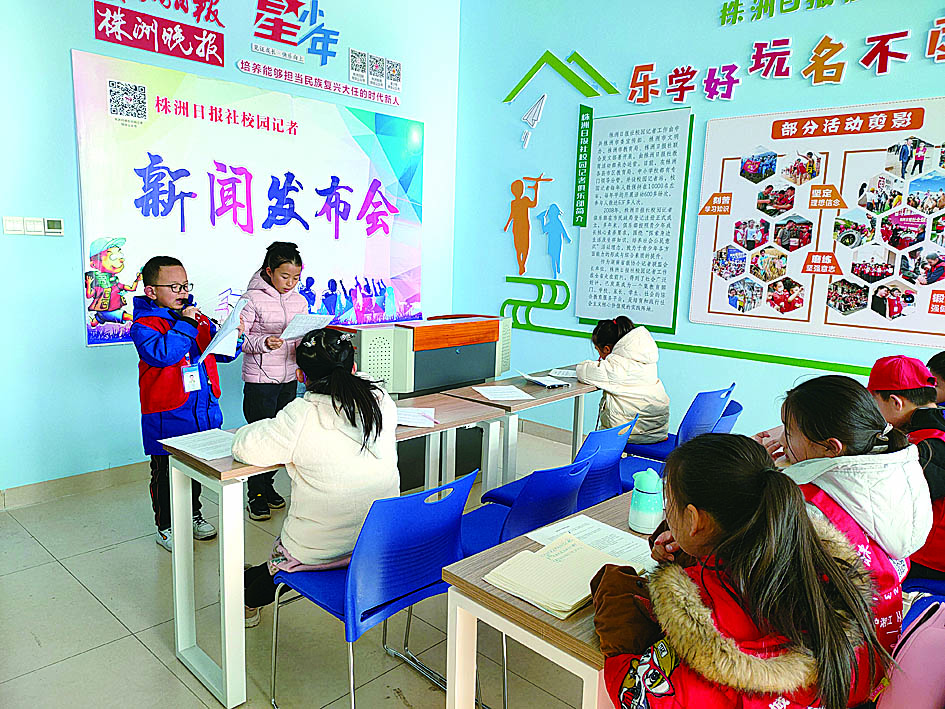 ▲1月2日下午,株洲市青少年成长实践中心,校园记者正在模拟新闻发言 曹稳 摄