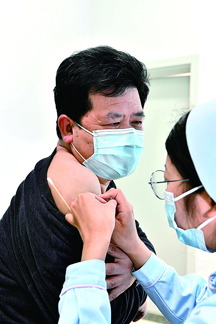 ▲1月6日,在山东省立第三医院接种点,医护人员在接种新冠疫苗