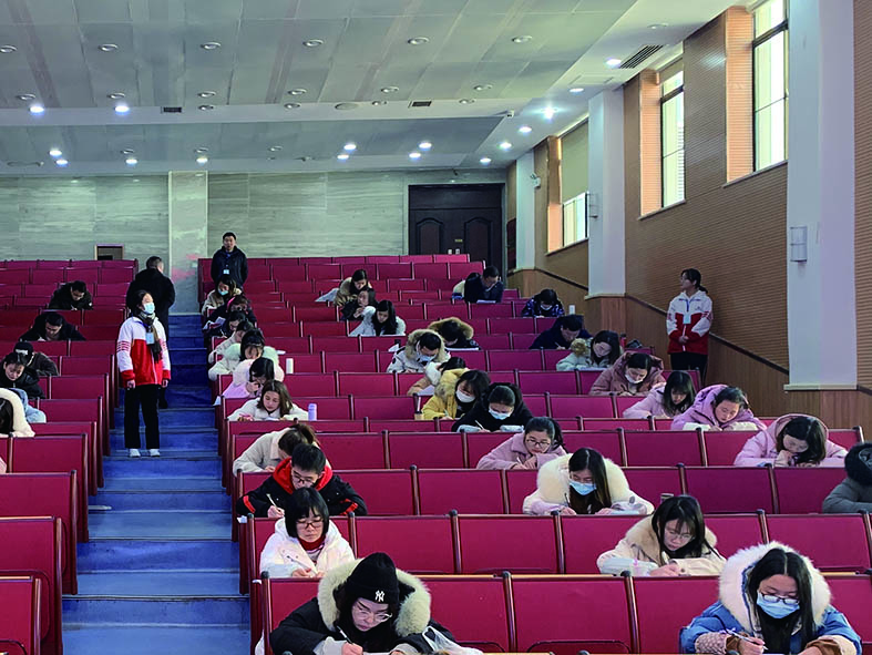 1月9日上午,一场特别的考试在外国语石峰学校拉开序幕。来自全校的语、数、外教师参加考试,该校德育副校长张丽兰、副校长刘牡兰、龙思文也在其列,而本次考试的监考则由该校5名学生担任。