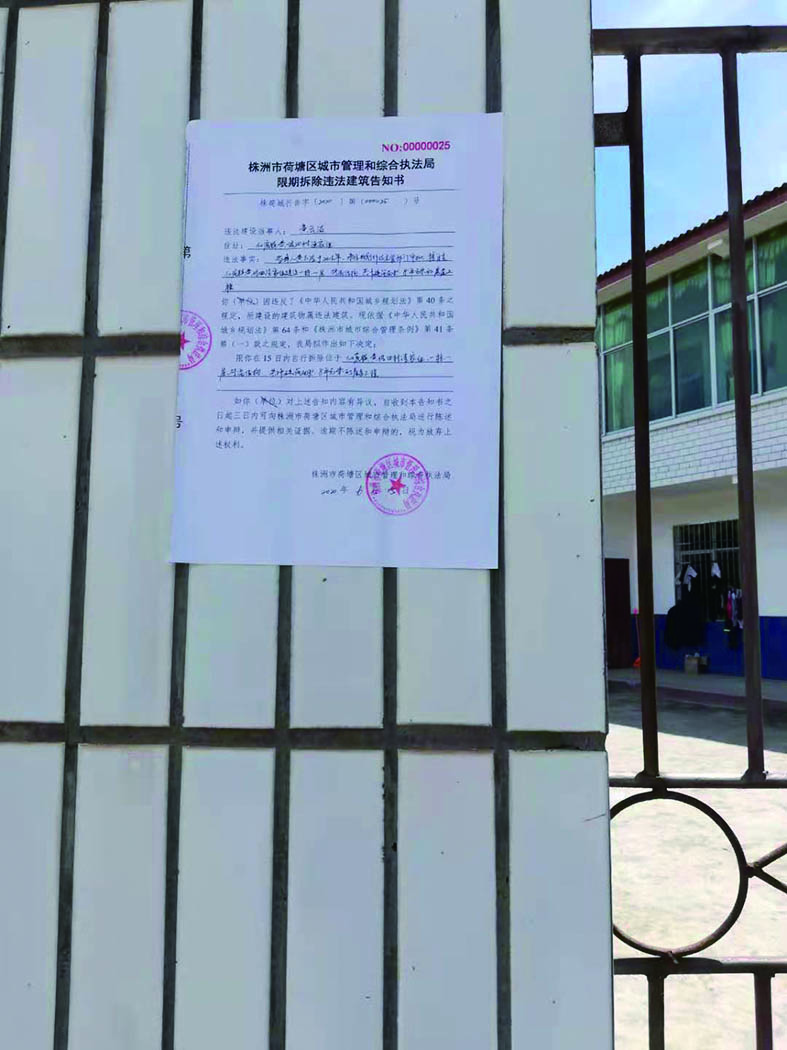 无奈之下,刘女士向村部及荷塘区城管部门反映,去年6月份,荷塘区城管部门工作人员到现场勘查后,将该建筑定性为违法建筑,并下达了限期拆除的告知书。但如今半年时间过去了,城管部门却没有任何动作。