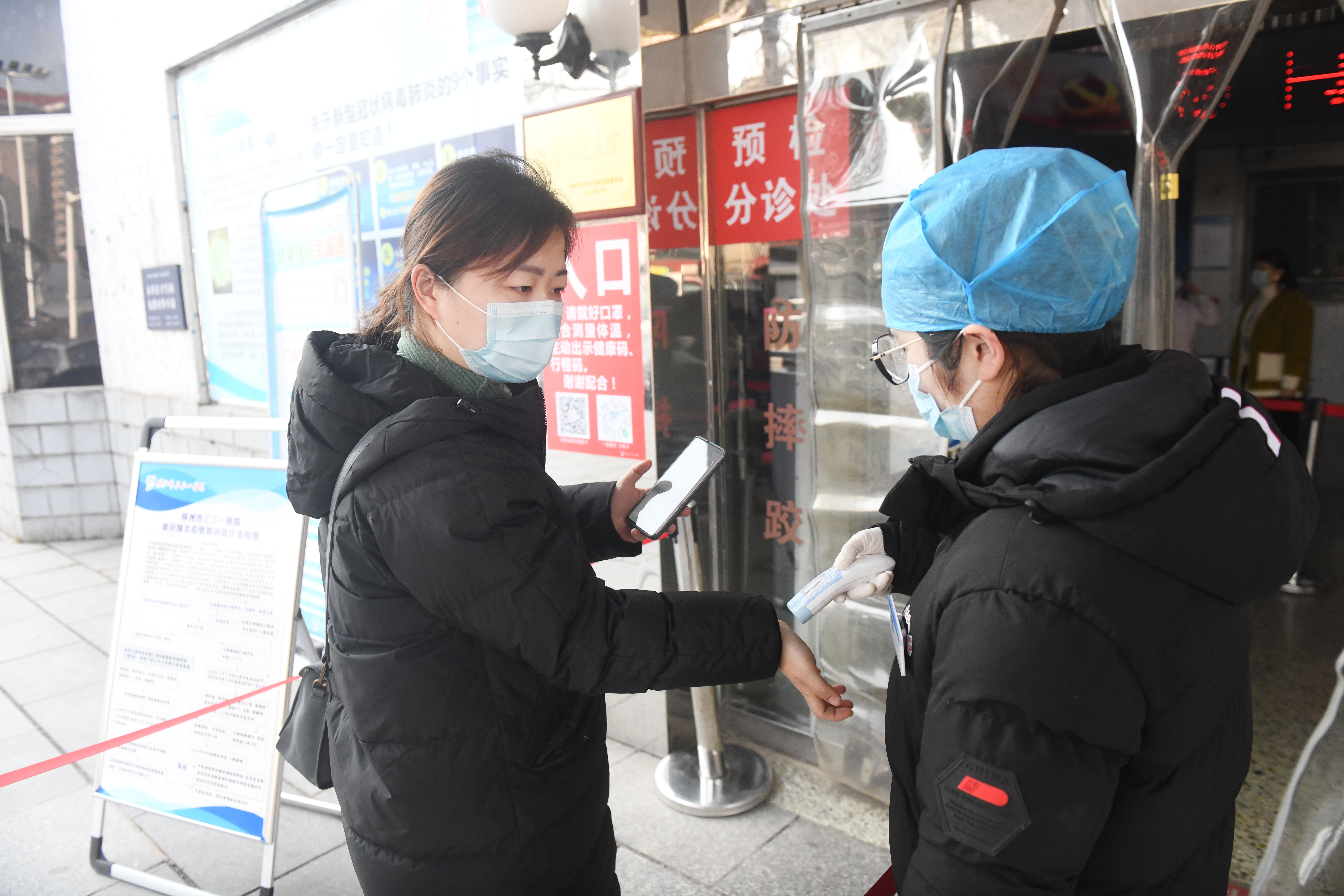 ▲1月13日,市三三一医院,医护人员正在对入院市民进行体温检测 记者 谢慧 摄
