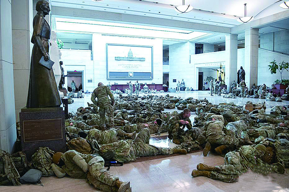 ▲美国会众议院众议院表决期间,国会大厦成“临时军营”