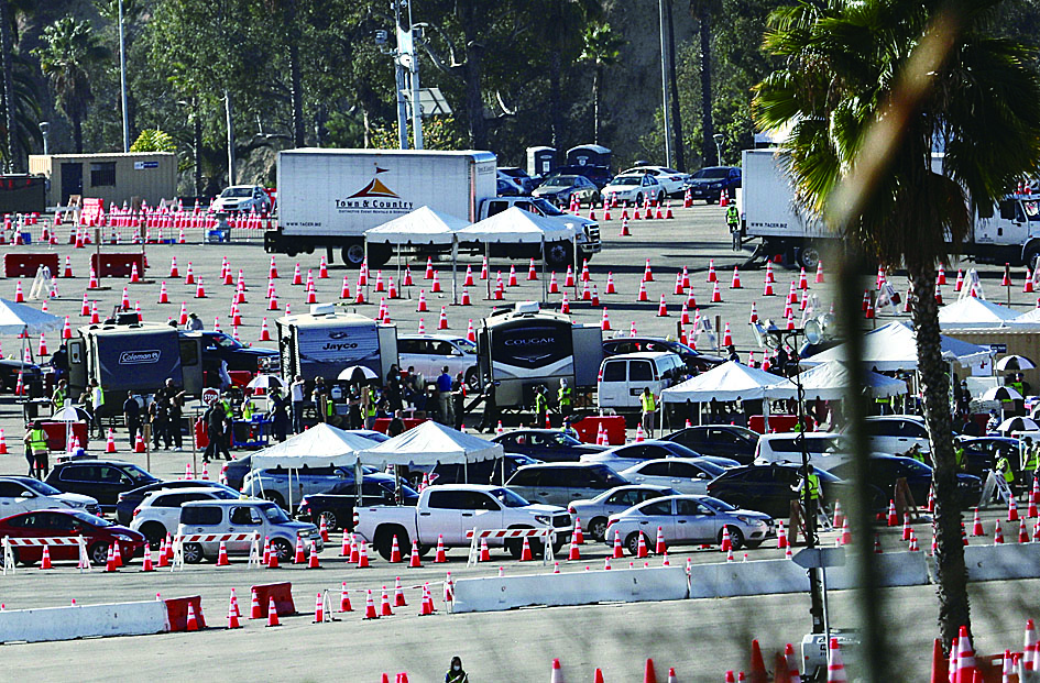 1月15日,人们驾车来到美国洛杉矶道奇体育场接种新冠疫苗。 位于加利福尼亚州洛杉矶县的道奇体育场15日起作为美国最大的新冠疫苗接种中心使用。该中心完全启动运营后将具备每日为1.2万人接种疫苗的能力。 (据新华社)