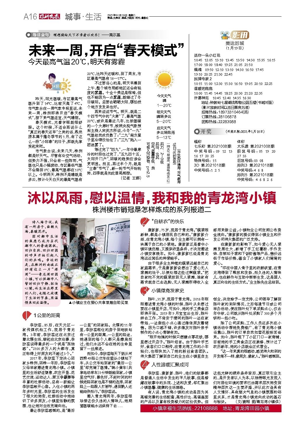 2017年,李欣蕊下定决心回家乡株洲,回株一年后,李欣蕊与父母举家搬进青龙湾小镇。小镇里的生活舒适惬意,农庄开垦、花艺交流、运动达人、厨王争霸赛等丰富的社群活动,总有一款能让李欣蕊敞开心扉。入住小镇的两年多时光里,李欣蕊的生活发生了很大的转变,社群活动中她结识了许多朋友,小镇里恬静的氛围,也让她对生活充满向往。