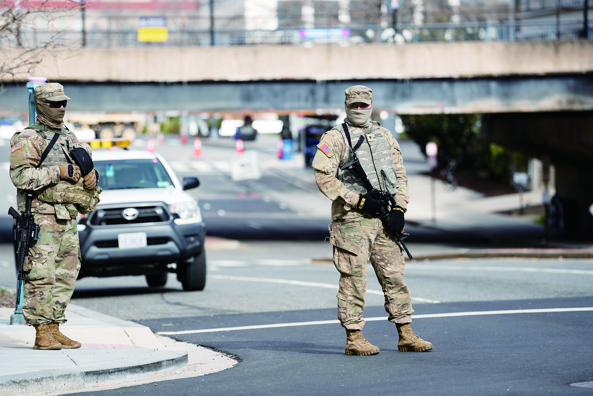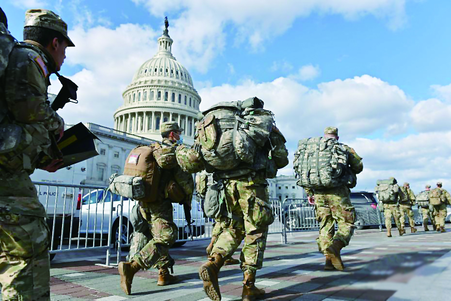 ▲1月18日,一队国民警卫队员进驻国会大厦