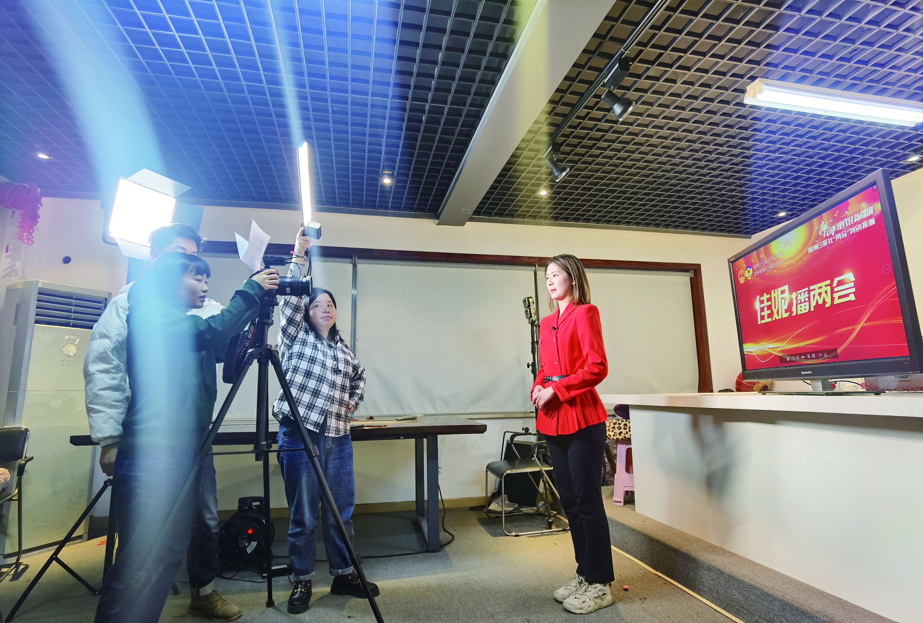 ▶株洲日报社新媒体中心记者正在录制两会视频栏目《佳妮播两会》 全媒体记者 谭浩瀚 摄