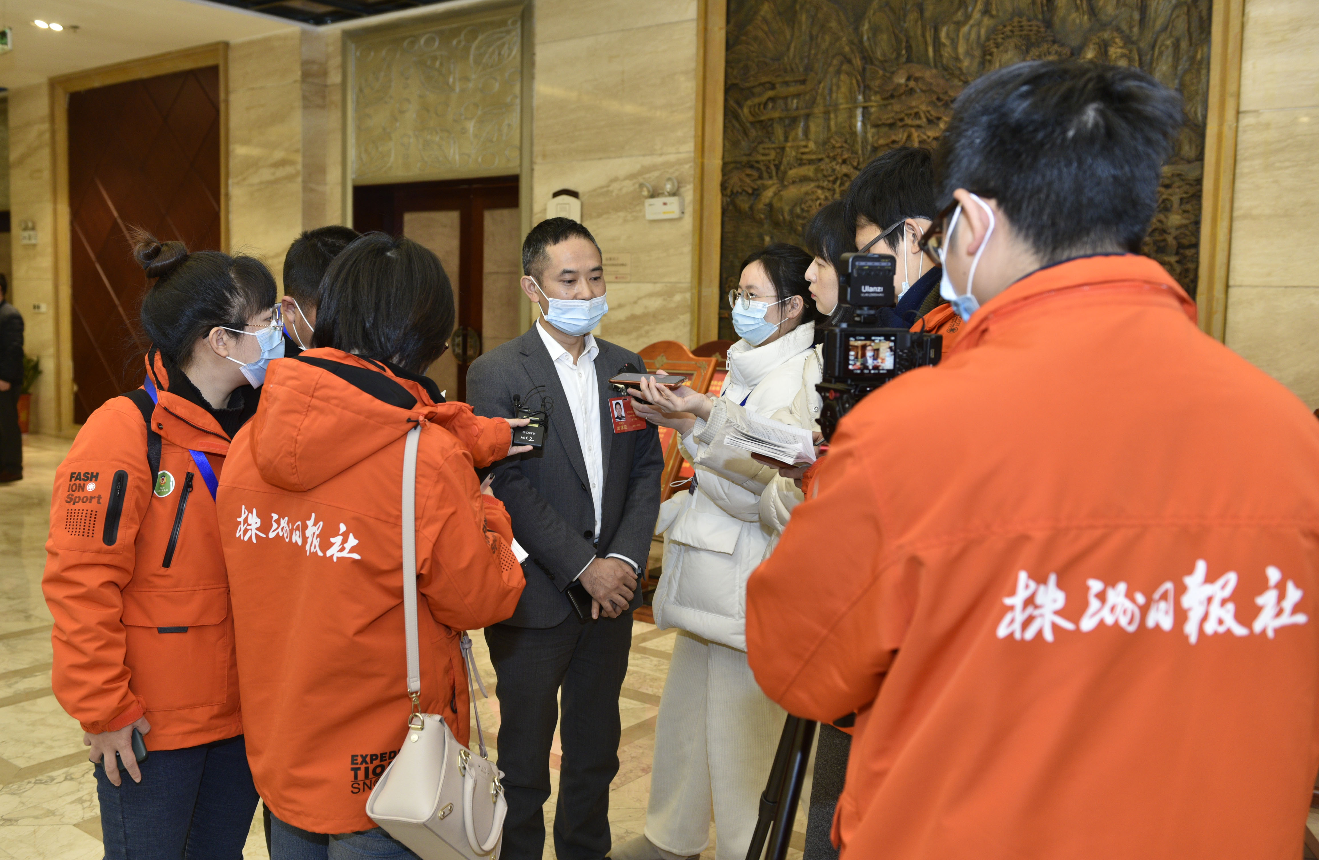 ▲株洲日报社记者在采访政协委员 全媒体记者 刘震 摄