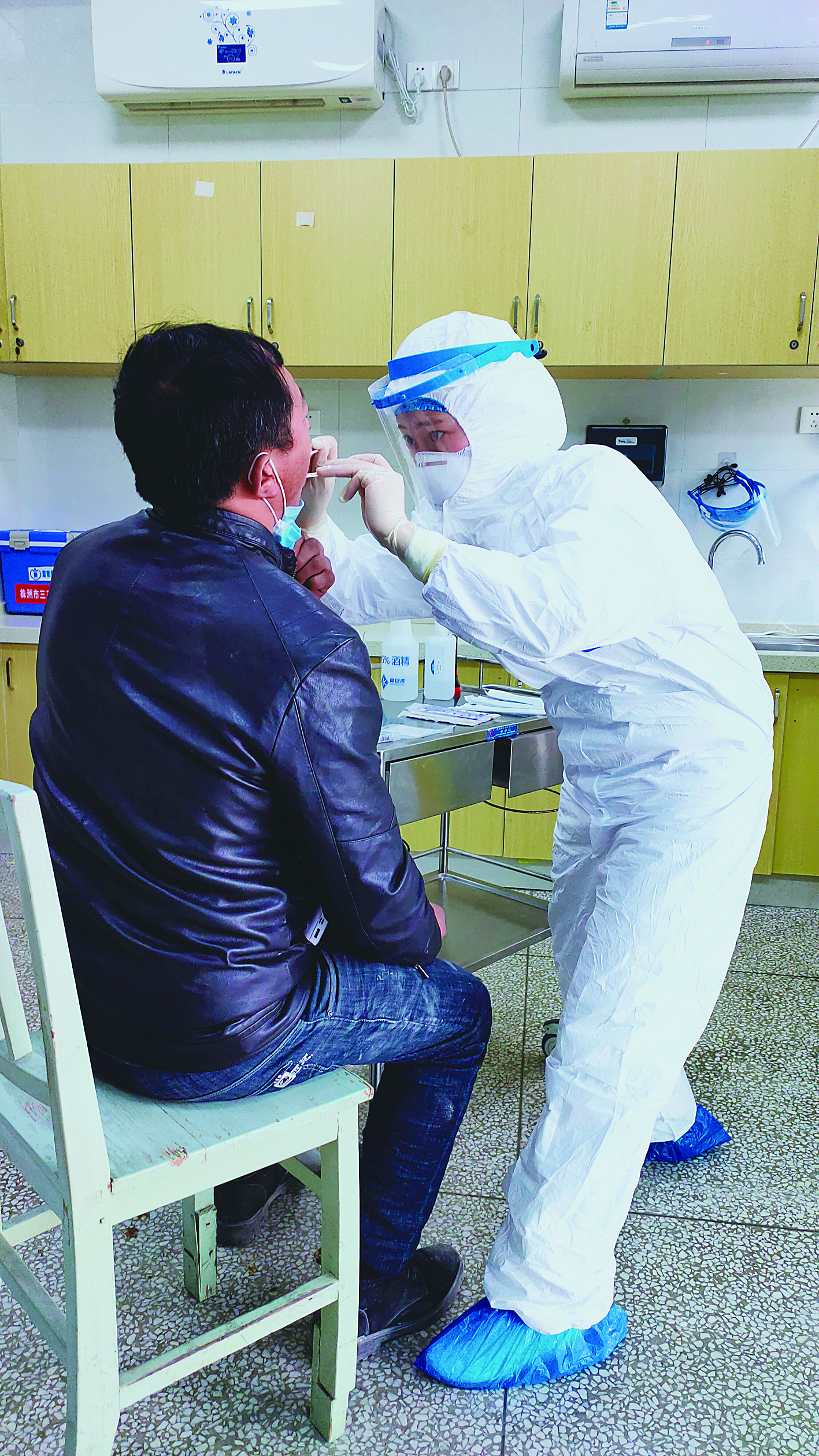 ▲市三三一医院,核酸检测咽拭子采集 记者 杨凌凌 摄