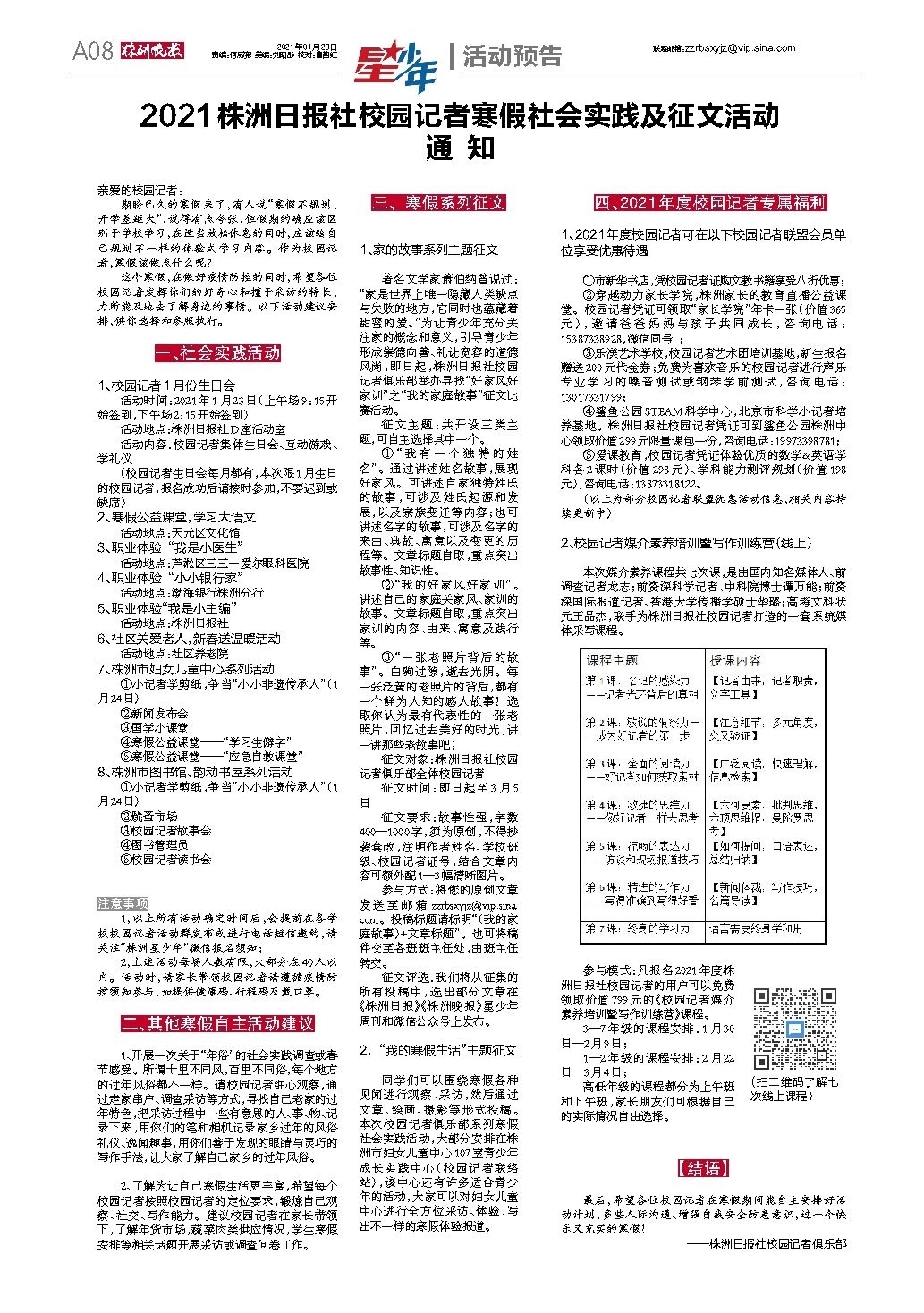 2021株洲日报社校园记者寒假社会实践及征文活动 通 知
