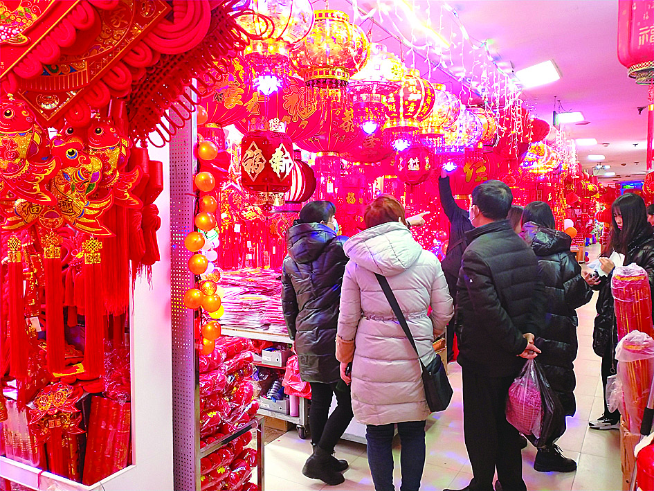 记者发现,市场内销售的春联、福字等传统年俗文化商品,价格普遍在几元至十几元之间,布艺宫灯、牛年生肖摆件等创意商品售价大部分不超过100元,颇受顾客欢迎。商户刘女士告诉记者,从本月中旬开始,前来选购年货商品的顾客逐渐增多,他们家过去一周的营业额几乎与12月半个月的营业额持平。