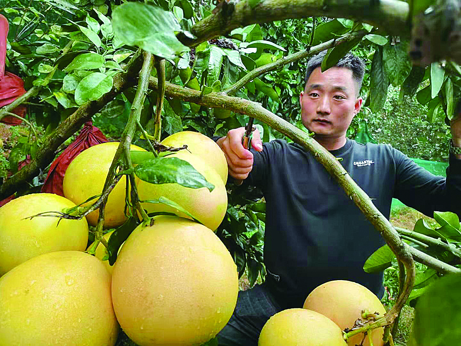 刚开始,我在村里承包了40多亩土地种柚子树苗。没有一点经验的我,从网络上找到很多种植视频和书籍,还尝试柚子品种改良的嫁接。