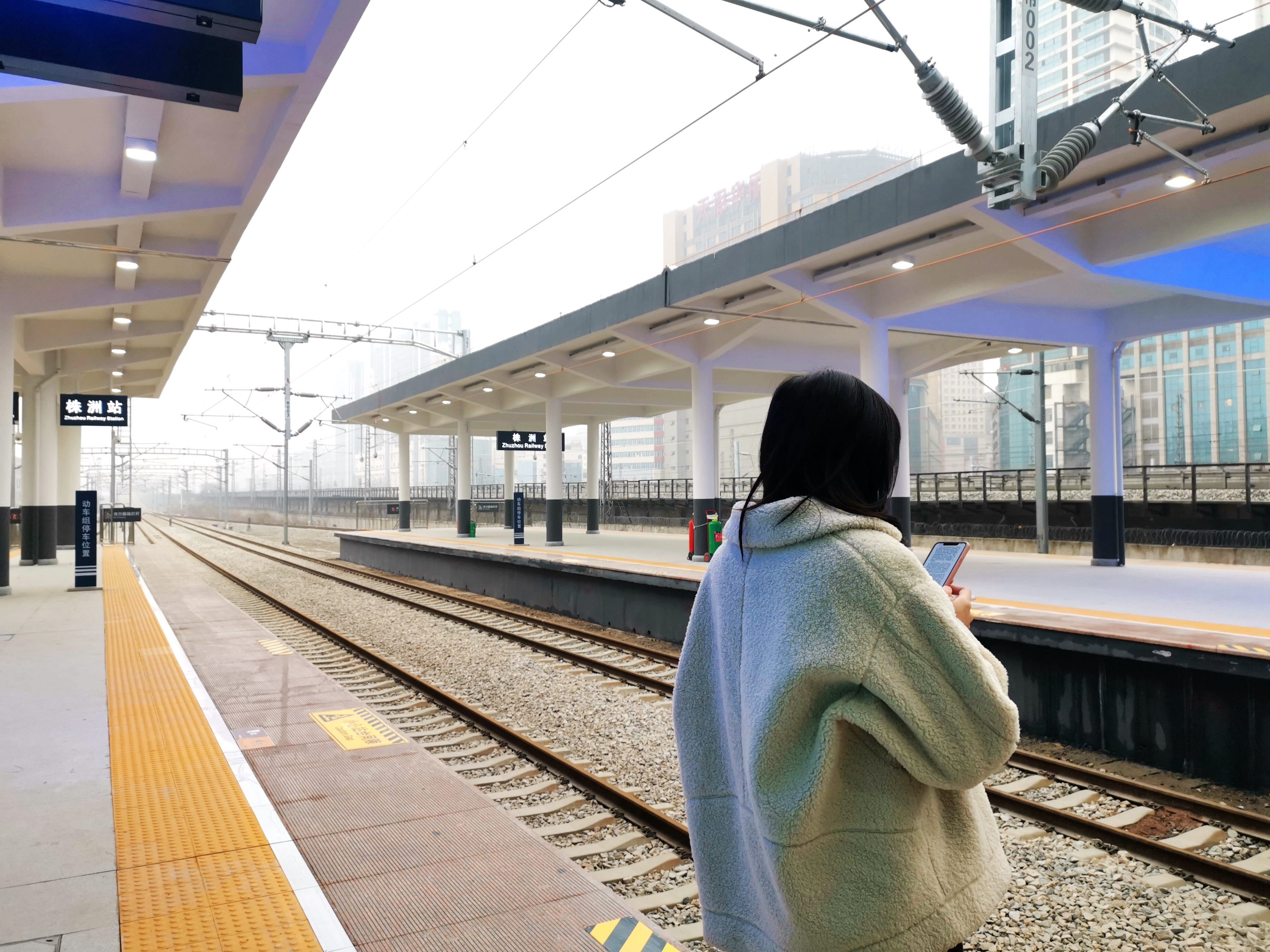 ▲一位市民在城铁株洲站的站台上候车 首席记者 戴凛 摄