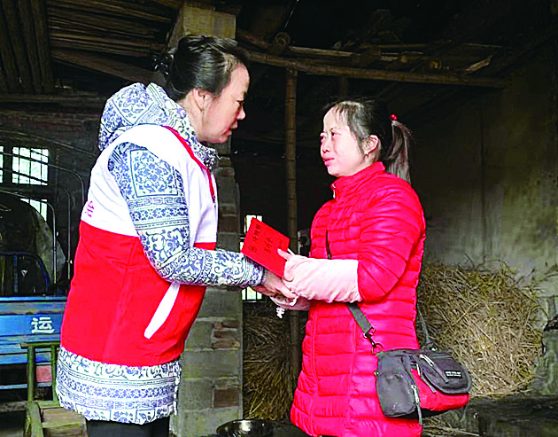 ▲市红十字会工作人员送去慰问金 通讯员供图