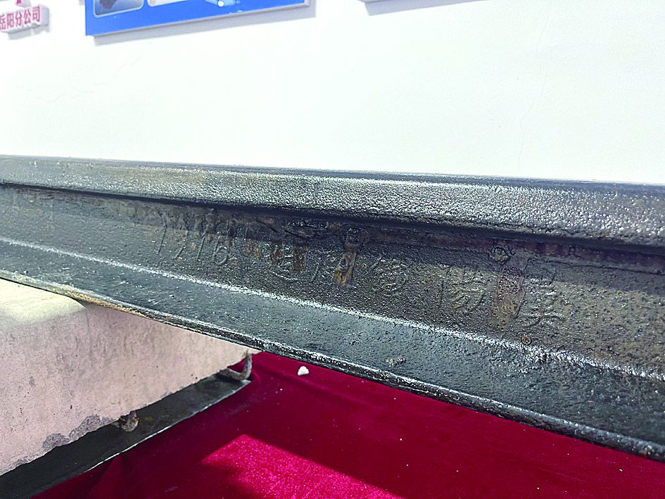 ▲保存在中铁株桥厂荣史馆的“汉阳造”铁轨 记者 伍靖雯 摄