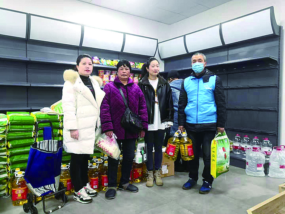 ▲市装饰装修行业协会工作人员为特困群众送年货 记者 刘玺 摄