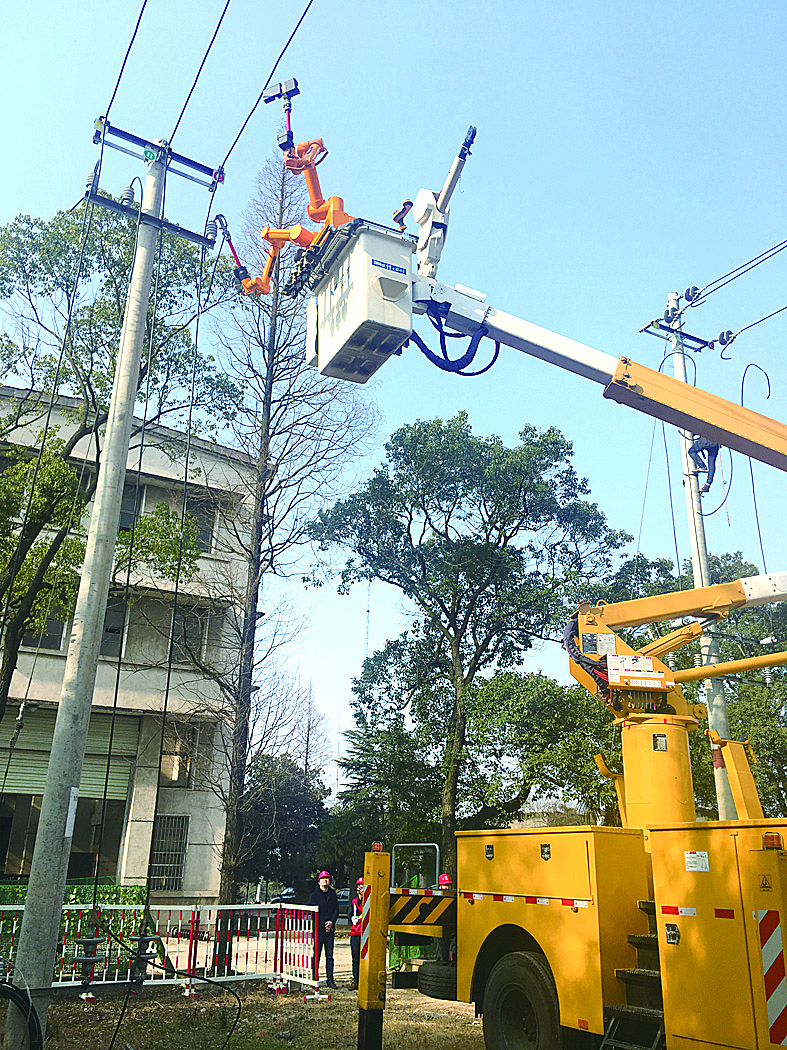 本报讯(记者 刘玺 通讯员 吴珊)前日下午3时,白马垄变电站,随着绝缘斗臂的缓缓上升,一个黄色的机器人与10千伏高压线越靠越近。当接近高压线时,机器人伸出一只手臂抓住一根电缆,另一只手臂举起剥线器,开始为导线搭接。近一个小时后,带电作业机器人顺利完成模拟任务。这标志着省内首次带电作业机器人模拟试点应用在我市完成。