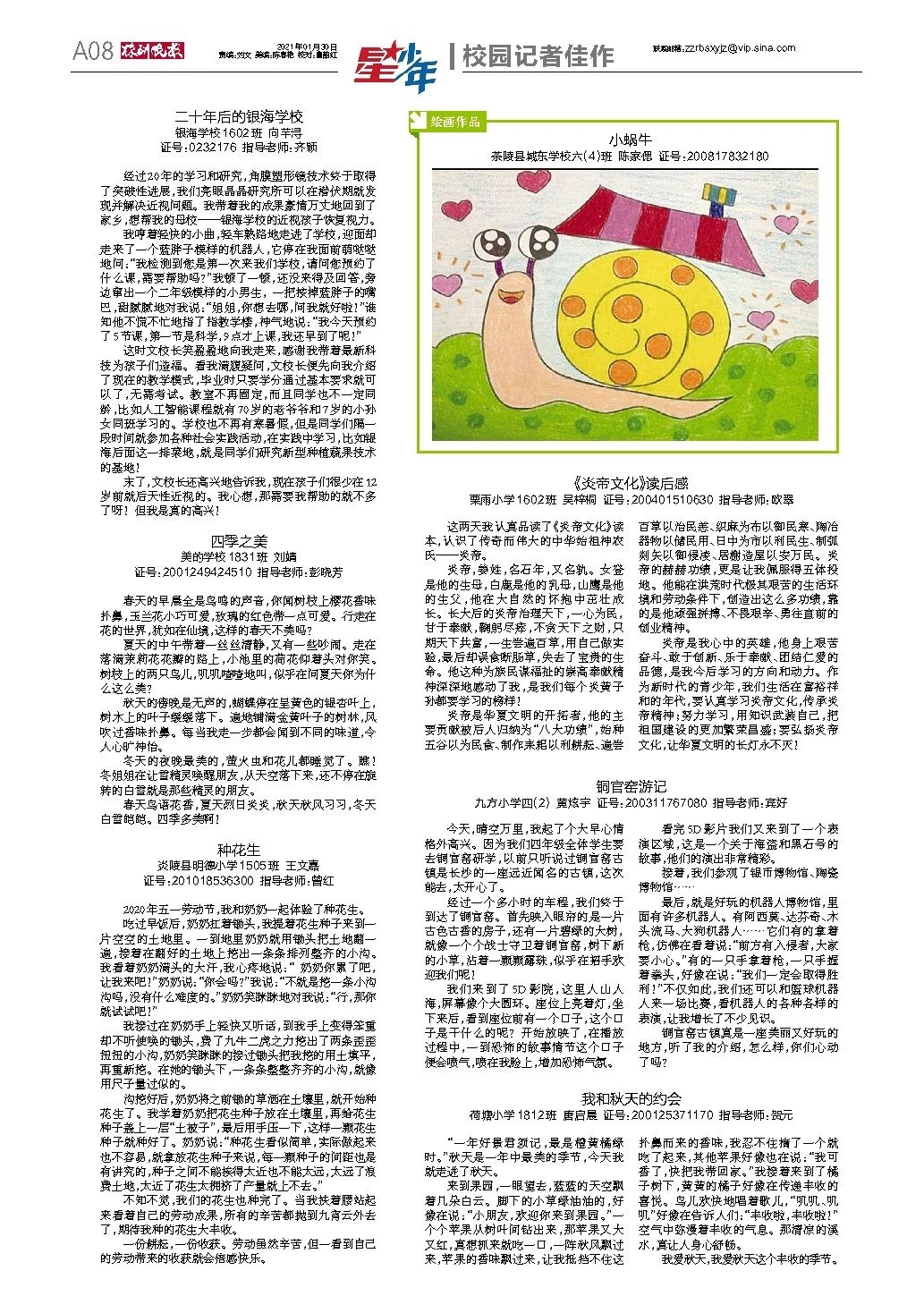 我哼着轻快的小曲,轻车熟路地走进了学校,迎面却走来了一个蓝胖子模样的机器人,它停在我面前萌哒哒地问:“我检测到您是第一次来我们学校,请问您预约了什么课,需要帮助吗?”我顿了一顿,还没来得及回答,旁边窜出一个二年级模样的小男生, 一把按掉蓝胖子的嘴巴,甜腻腻地对我说:“姐姐,你想去哪,问我就好啦!”谁知他不慌不忙地指了指教学楼,神气地说:“我今天预约了5节课,第一节是科学,9点才上课,我还早到了呢!”