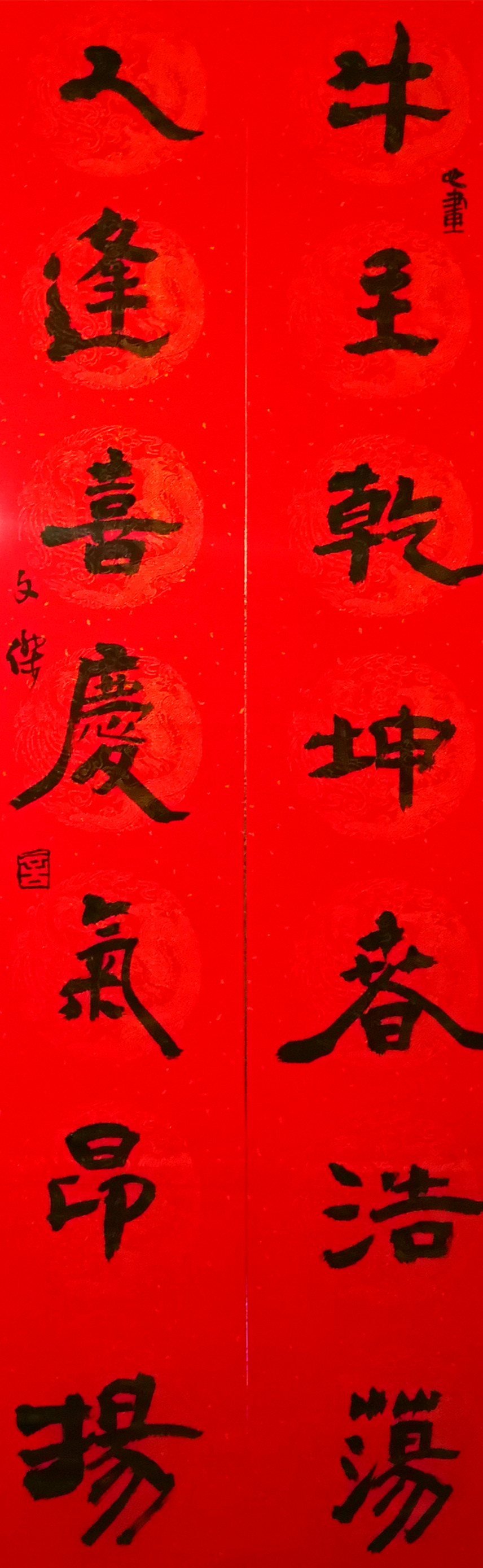 ▲隶书:春联一副(作者:言文杰)
