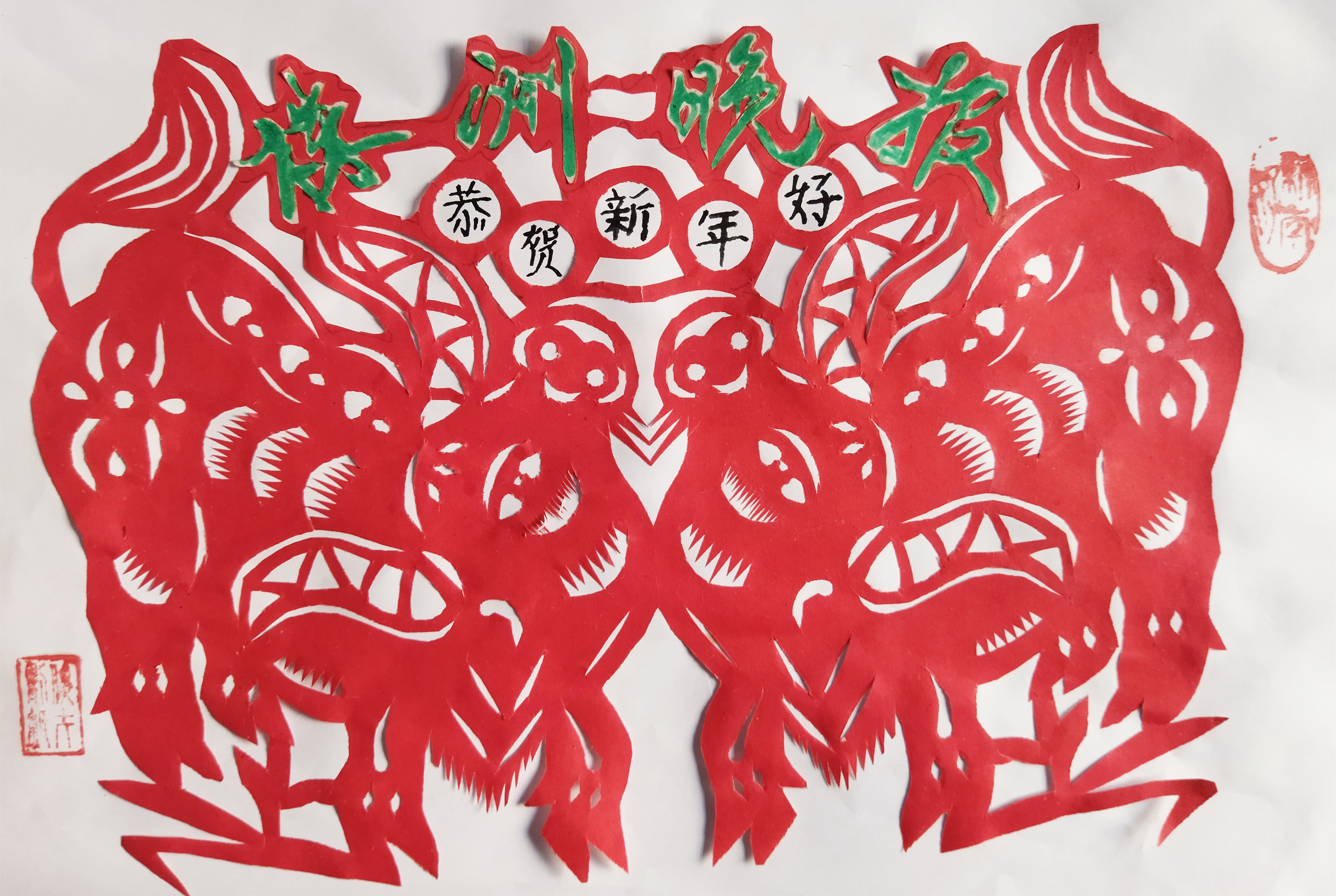 ▲剪纸:《株洲晚报恭祝新年好》(作者:师才俊)